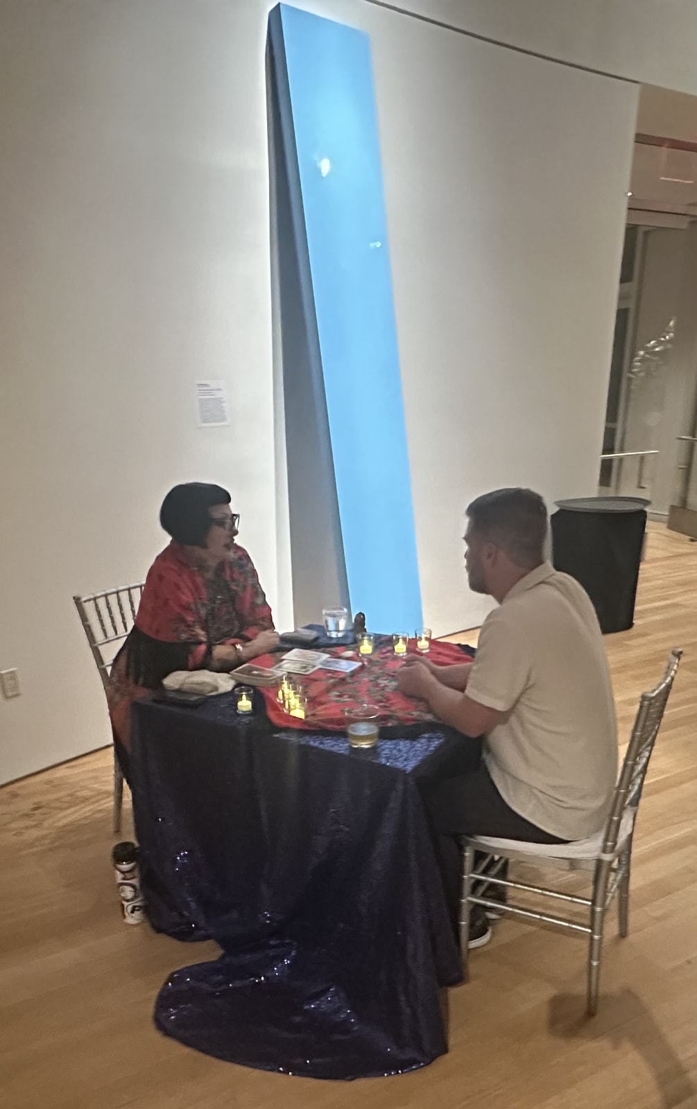 A professional tarot card reader was invited as a special guest for the evening, offering guests private mini-readings throughout the reception. Set within a quiet, candle-lit corner of the garden, the experience blended art, intuition, and atmosphere, perfectly complementing the sculptural surroundings.